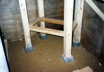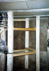 薪ストーブのための床下補強ストーブが届く前に、ストーブ周りの防火のレンガ壁は作っておきました。 ![]() 始めは井桁に組んで受けを作ろうと思っていましたが、もっと簡単にストーブ脚(4本)の位置に合わせて下から補強柱(4本)を立てることにしました。 ![]() この部分は、後日棚として利用しようと思っています。 |