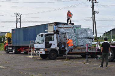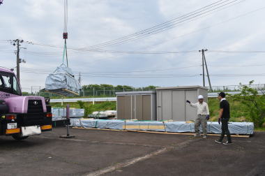 ログキットの荷降ろしログハウスキットは40フィートx1、20フィートx1の計2本のコンテナで納品されます。 ![]() 「クレーンの手配・荷降ろし・二次輸送についてはキートスさんに依頼していたので、不安はありませんでした。 ![]() 私も実際に荷降ろしをしている現場を見て、梱包の大きさや数に圧倒されたと同時に、自分が想像していたよりはるかに過酷な作業が待っているんだとここで実感。 ![]() 荷降ろしはキートスのスタッフに差配してもらい、私達も手伝いをしながら作業はスムーズに進み、2本のコンテナは午前中に帰っていきました。 |