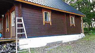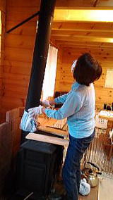 2015年 8月、ログハウスのメンテナンスをしました。 【 1.一部再塗装 】留守中の猫主さまが、玄関脇のログ壁を爪とぎに使っていました。 ![]() ログ壁の再塗装をし、新築同様にきれいになりました。 結果オーライです。 ![]() 東側のログ壁は積雪の影響で毎年塗装しているので、とってもきれいです! 【 2.薪ストーブの煙突掃除 】こちらは3シーズンまったく手付かずでしたので気になっていましたが、乾燥した薪を使っていたためか、煙突内のススも乾燥した良い?ススでした。 ![]() ネット購入したブラシ(4,500円)と延長用の棒(5本)を使い、右腕奥さんと2時間くらいで完了。 ![]() ススの量は、煙突の縦垂直部分(4m)で300gくらい、横引き部分(2m)で同じく300gくらいでした。 ![]() 試しに ストーブ火付けしてみました。 ![]() これで、今冬の火遊びの準備OK!です。 【 3.階段、ログ床の清掃 】階段、ログ床に黒い汚れがつき始めたので、掃除してワックスを塗りました。 ![]() 階段もログ床も作ってすぐに"未晒し蜜蝋ワックス"を塗ってあったので、スポンジに水をつけてこすると簡単に汚れも落ち、ワックスを塗って新品同様になりました。 ![]() この掃除は冬場のログ生活でも体を使うので、よい運動になりそうです。 |
