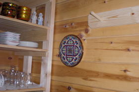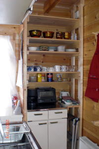 台所横には、彼が残り材料で食器棚を作ってくれました。