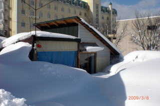 「ガ〜ン!でも何でやねん? 物置き小屋なくなったら困ります。雪も積もっているのに〜!」