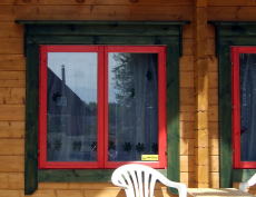 彼が増築部分の作業で頑張ってる間、ドアや窓枠の赤い塗装の塗り直しました。
